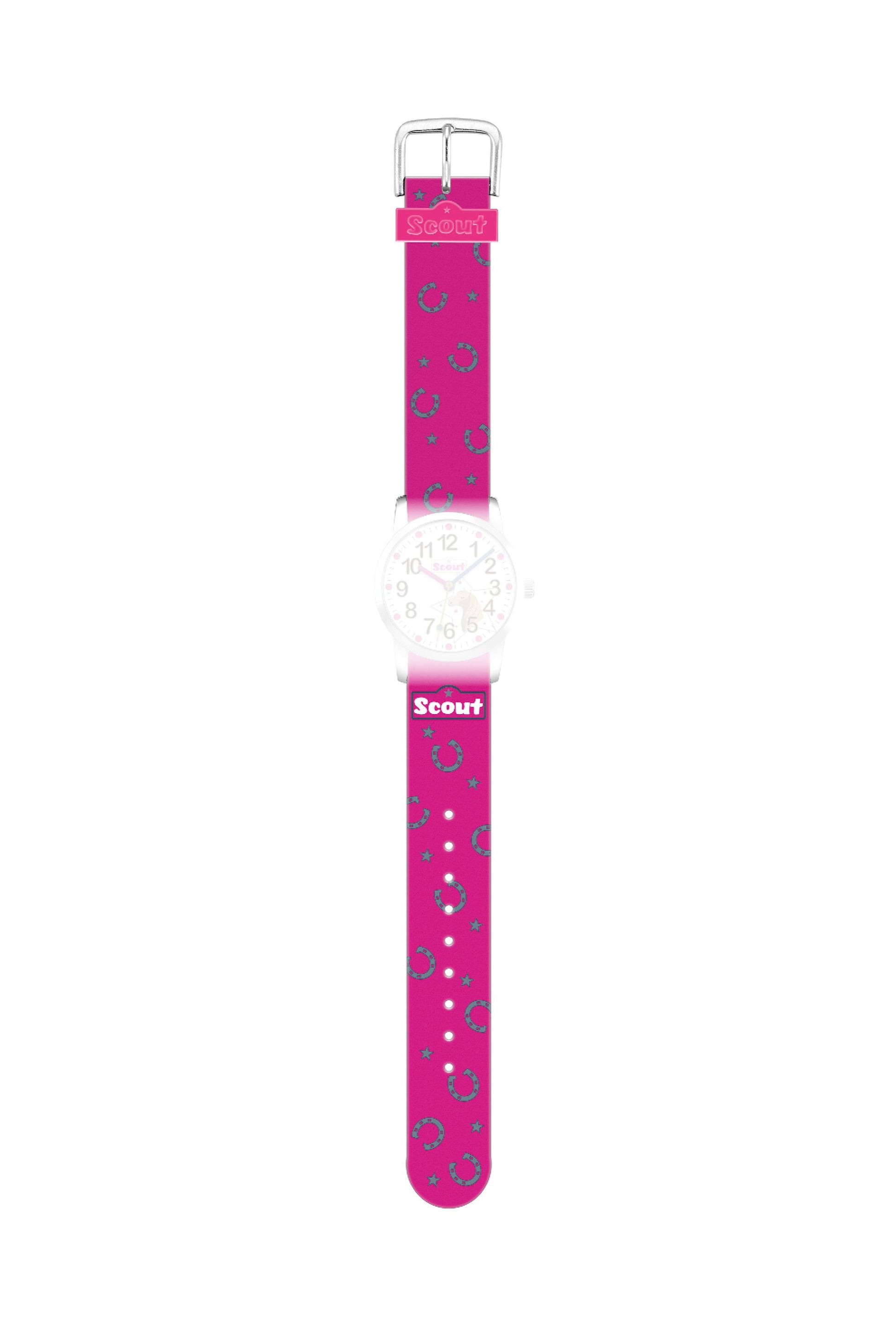 Scout Kunstlederband pink Serie Up! Motiv Hufeisen. Das Uhrband aus anschmiegsamen Kunstleder ist sehr robustund mit einer leichten Aluminiumschließe versehen.