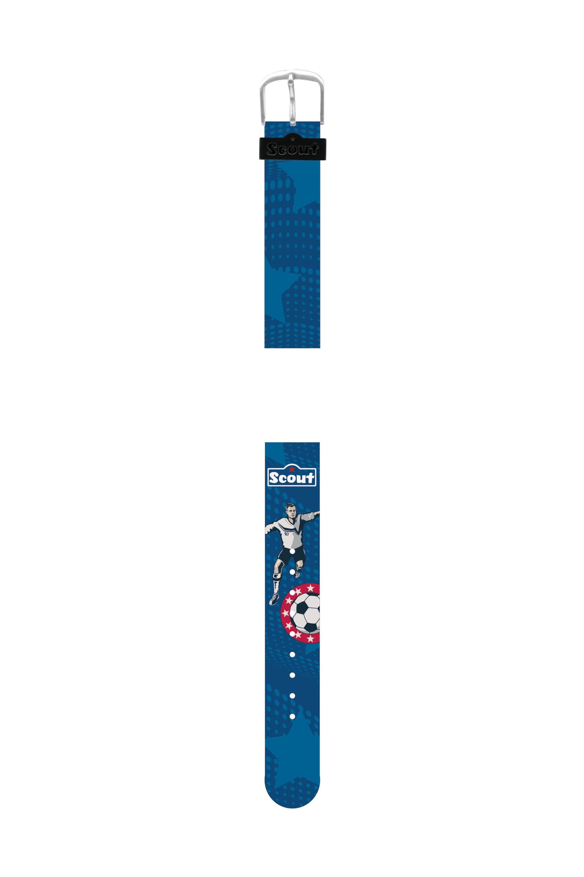 Scout Kunstlederband blau aus der Serie Fußball Star mit Motiv Fußball.Das Kunstleder-Material ist widerstandsfähig und dennoch weich und anschmiegsam, die Schließe ist aus robustem Aluminium gefertigt.