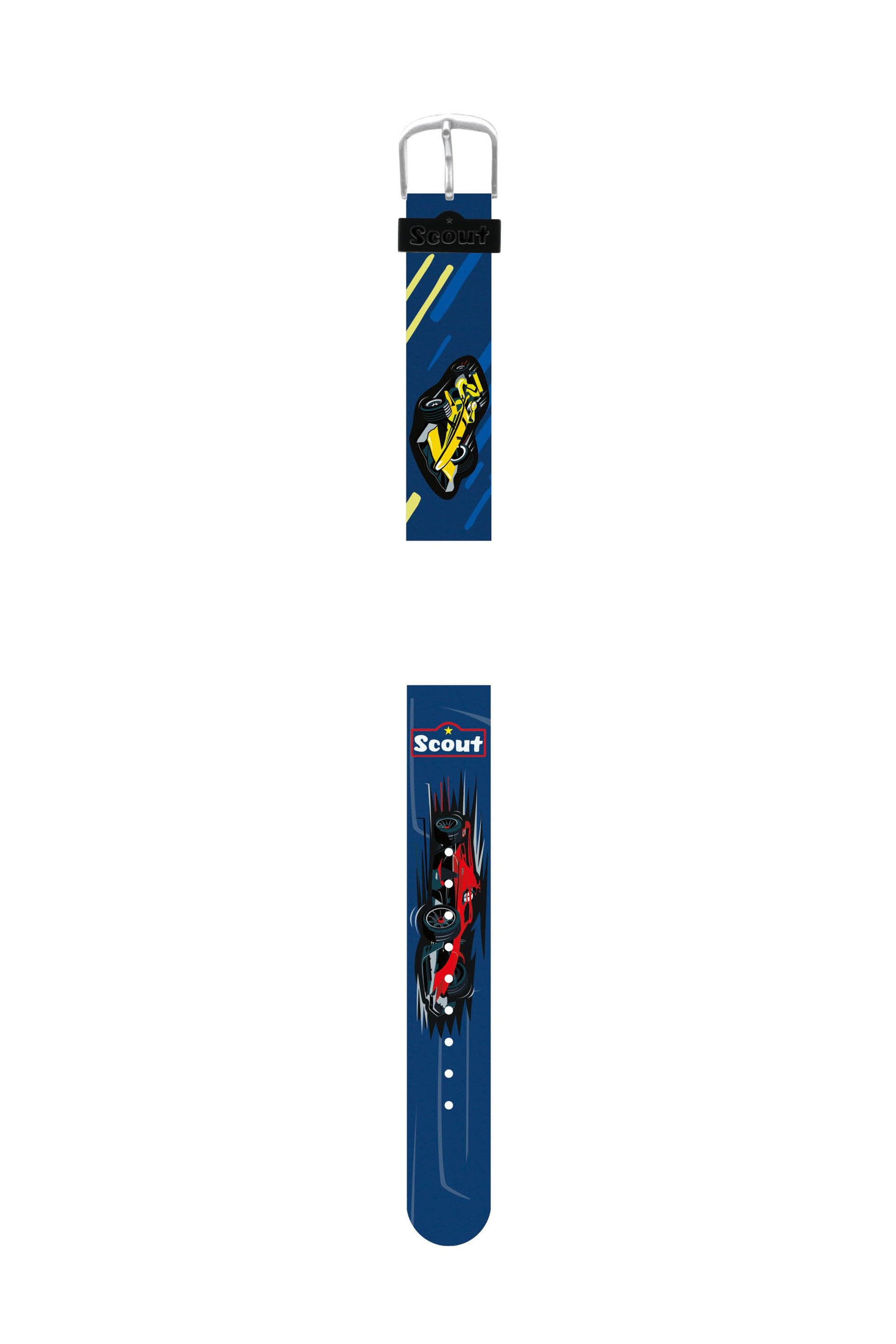 Scout Kunstlederband blau Serie Star Kids Motiv Rennwagen,Rennauto. Das Material ist widerstandsfähig, dennoch weich und anschmiegsam, die Schließe ist aus robustem Aluminium gefertigt.