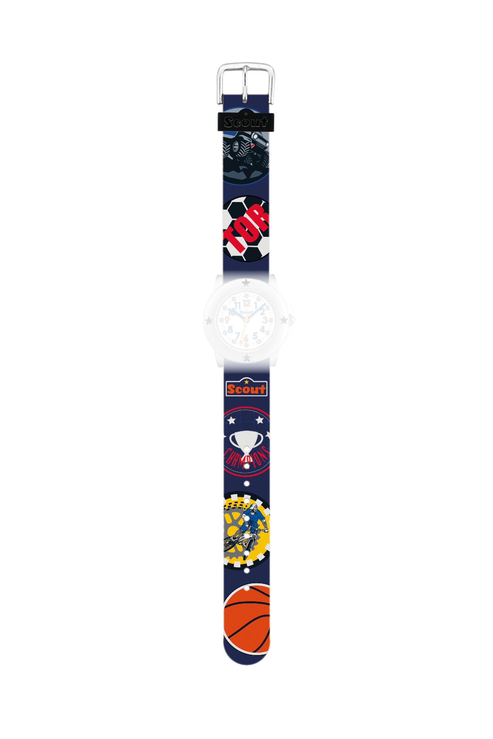 Scout Kunstlederband Serie Star Kids Motiv Fußball und BMX. Das robuste und dennoch anschmiegsame Kunstlederband wird mit einer leichten Aluminiumschließe geschlossen