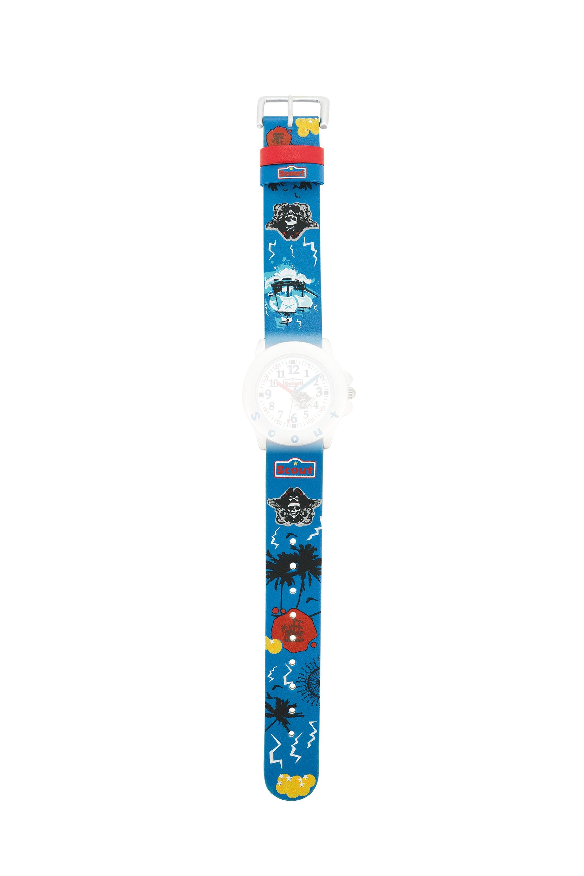 Scout Kunstlederband blau mit Motiv Pirat und Schiff. Das Band ist mit einer robusten Aluminiumschließe versehen