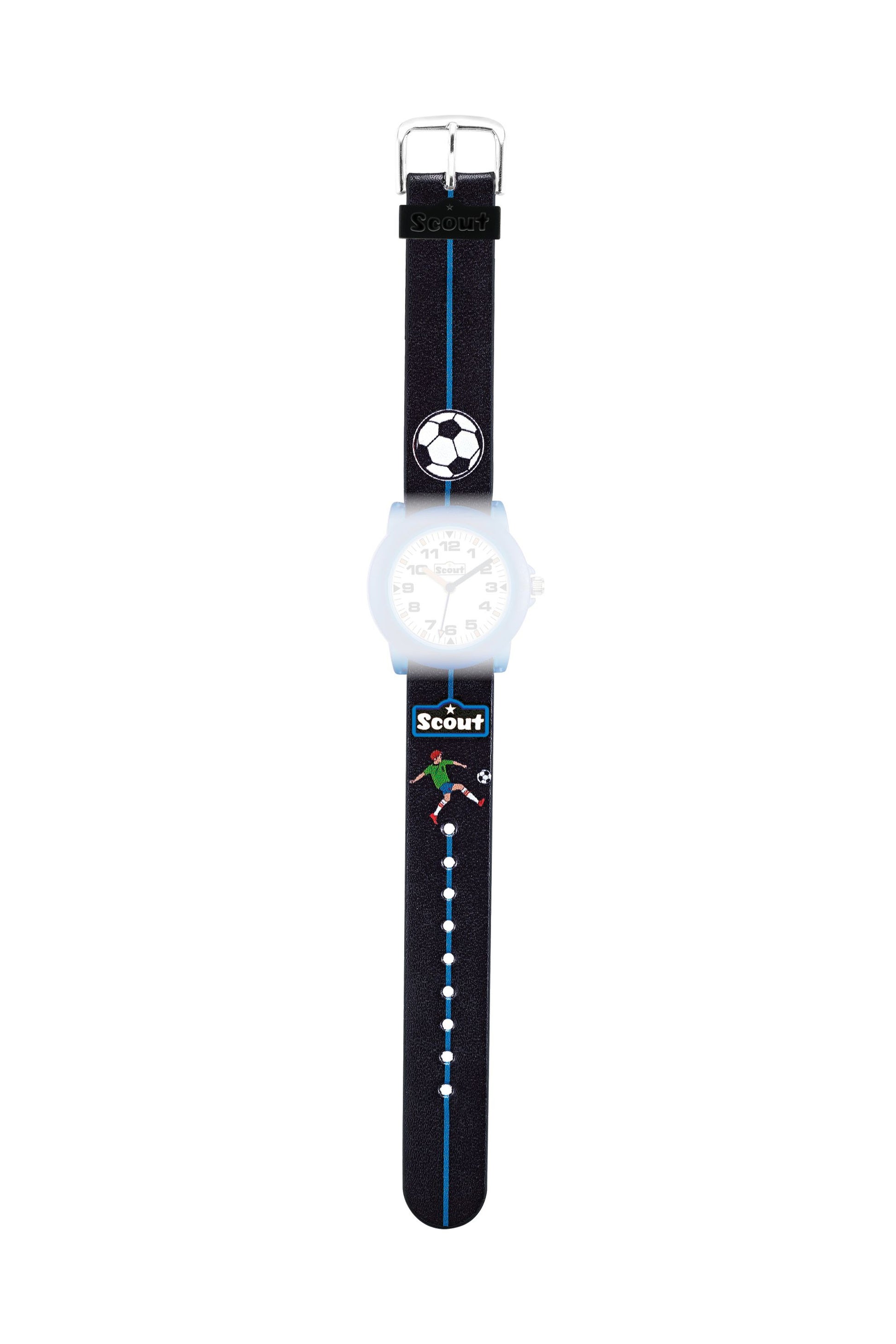 Scout Kunstlederband schwarz Serie Crystal Football black Motiv Fußball mit Aluminiumschließe