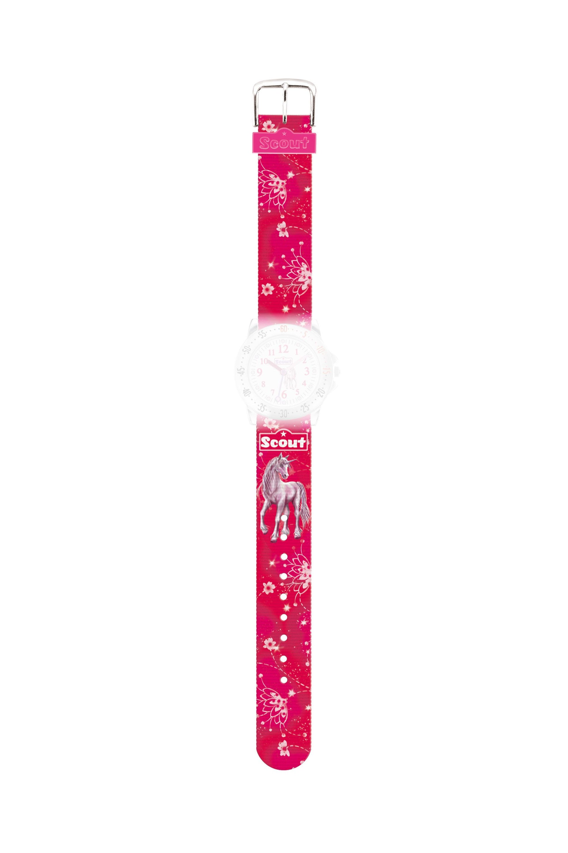 Scout Textilband pink Serie Action Girls .Das Textilband ist waschmaschinenfest bis 30°C und mit einer robusten Edelstahlschließe versehen.