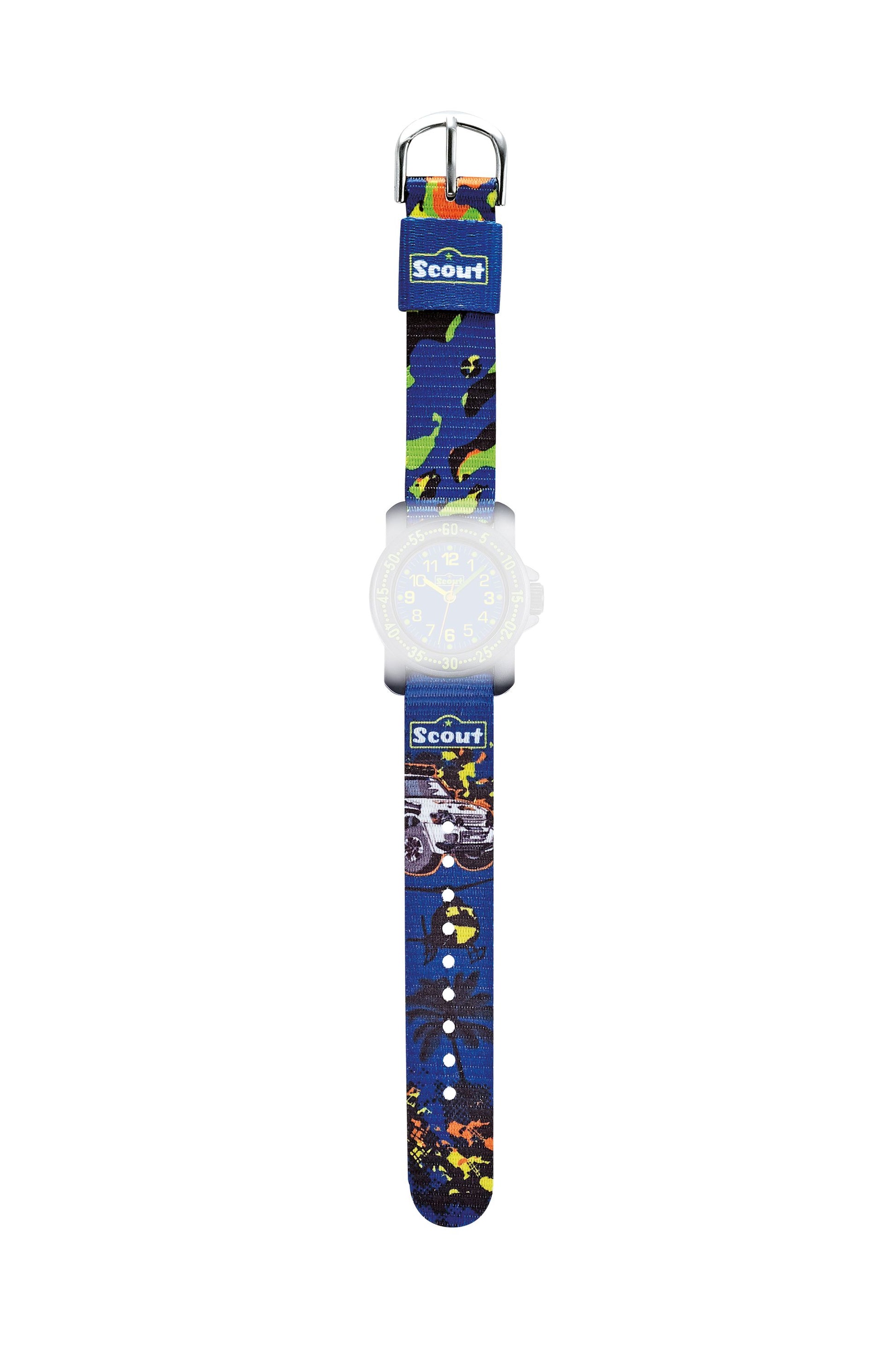 Scout Textilband blau,rot,grün und gelb Serie Action Boys. Dieses weiche Textiluhrarmband kann bis 30°C in der Waschmaschine gewaschen werden