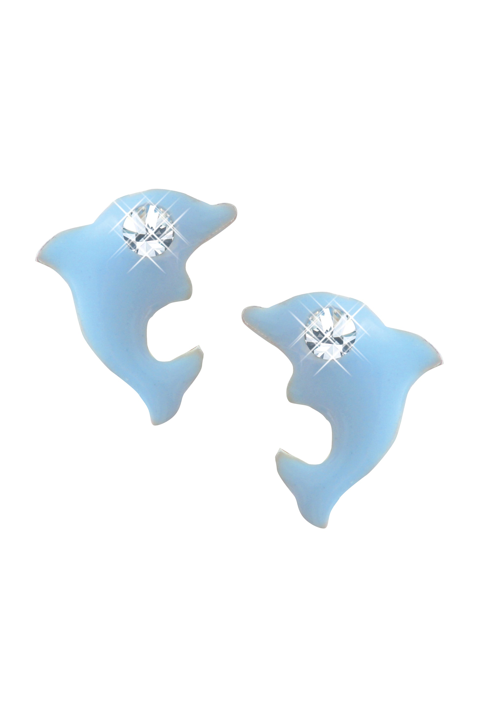 Scout Ohrstecker Silber 925 rhodiniert mit hellblauem Delfin-Motiv und funkelnden Steinen