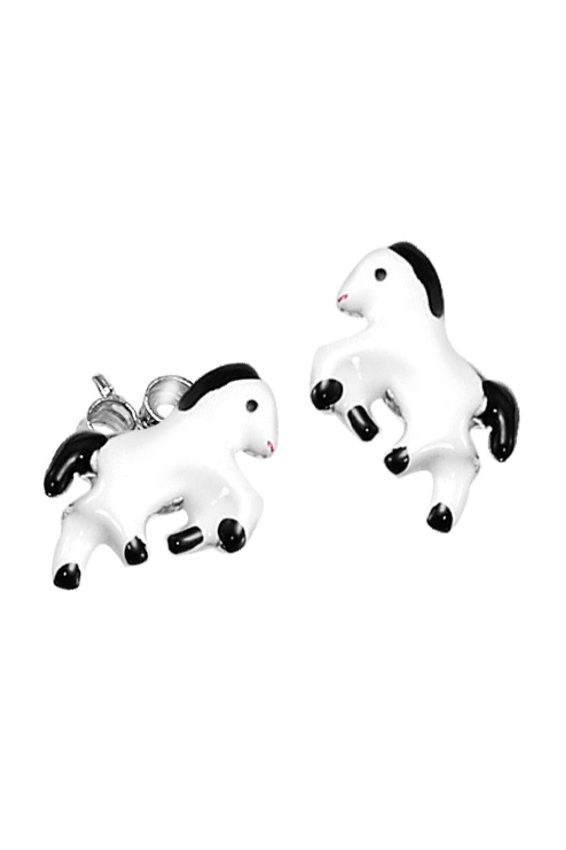 Scout Ohrstecker aus 925/- Sterling Silber rhodiniert Motiv Pferde weiß/schwarz emailliert