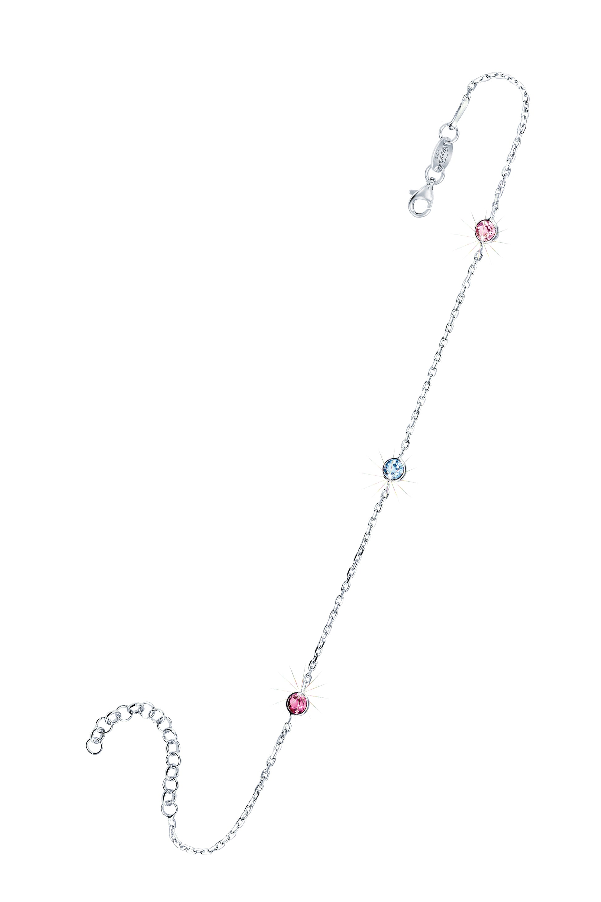 Scout Armband aus 925/- Sterling Silber rhodiniert mit 3 Zirkonia in blau und rosa