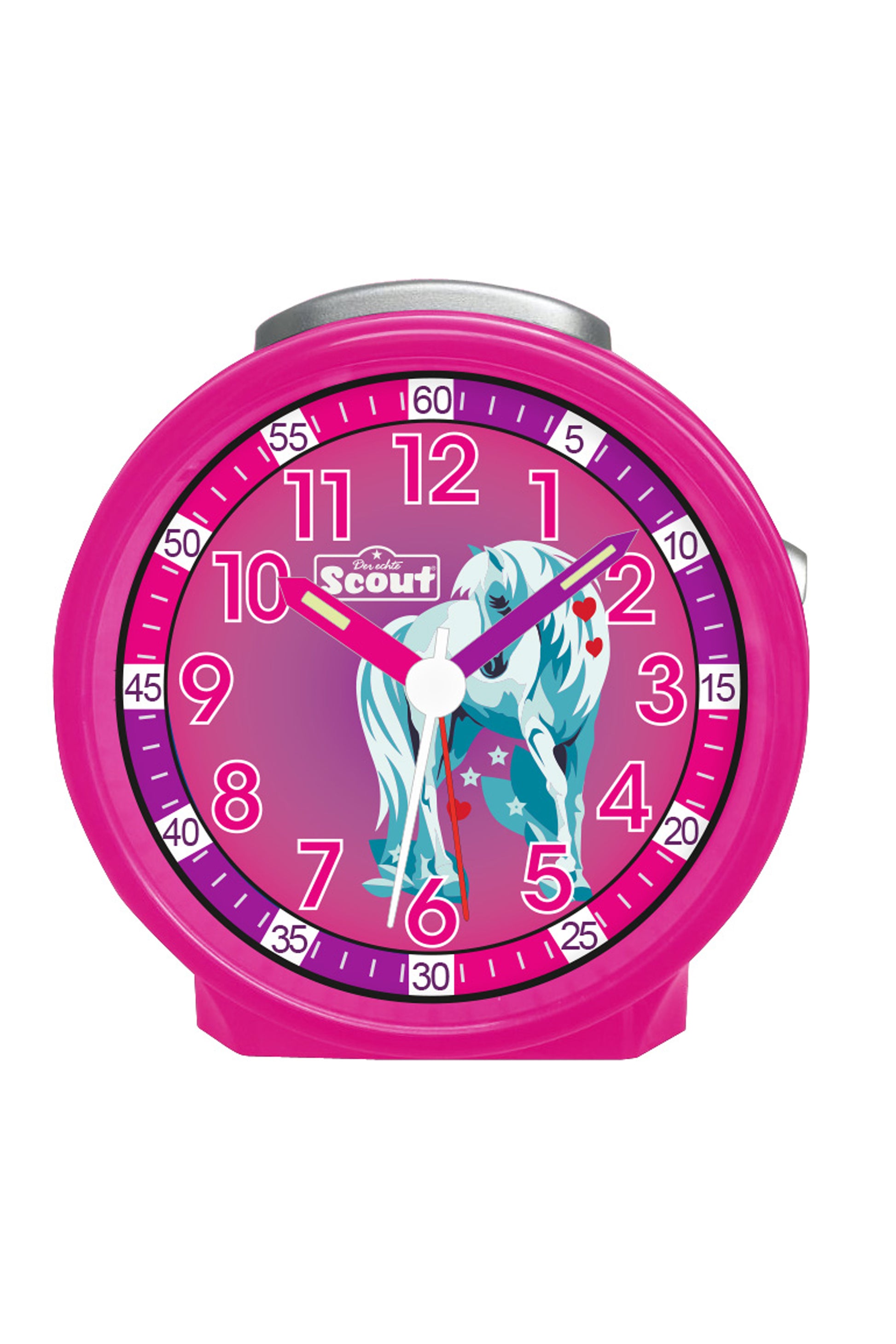 Scout Wecker analog mit pinkem Gehäuse Serie "White Unicorn" mit Lernziffernblatt und Einhorn-Motiv