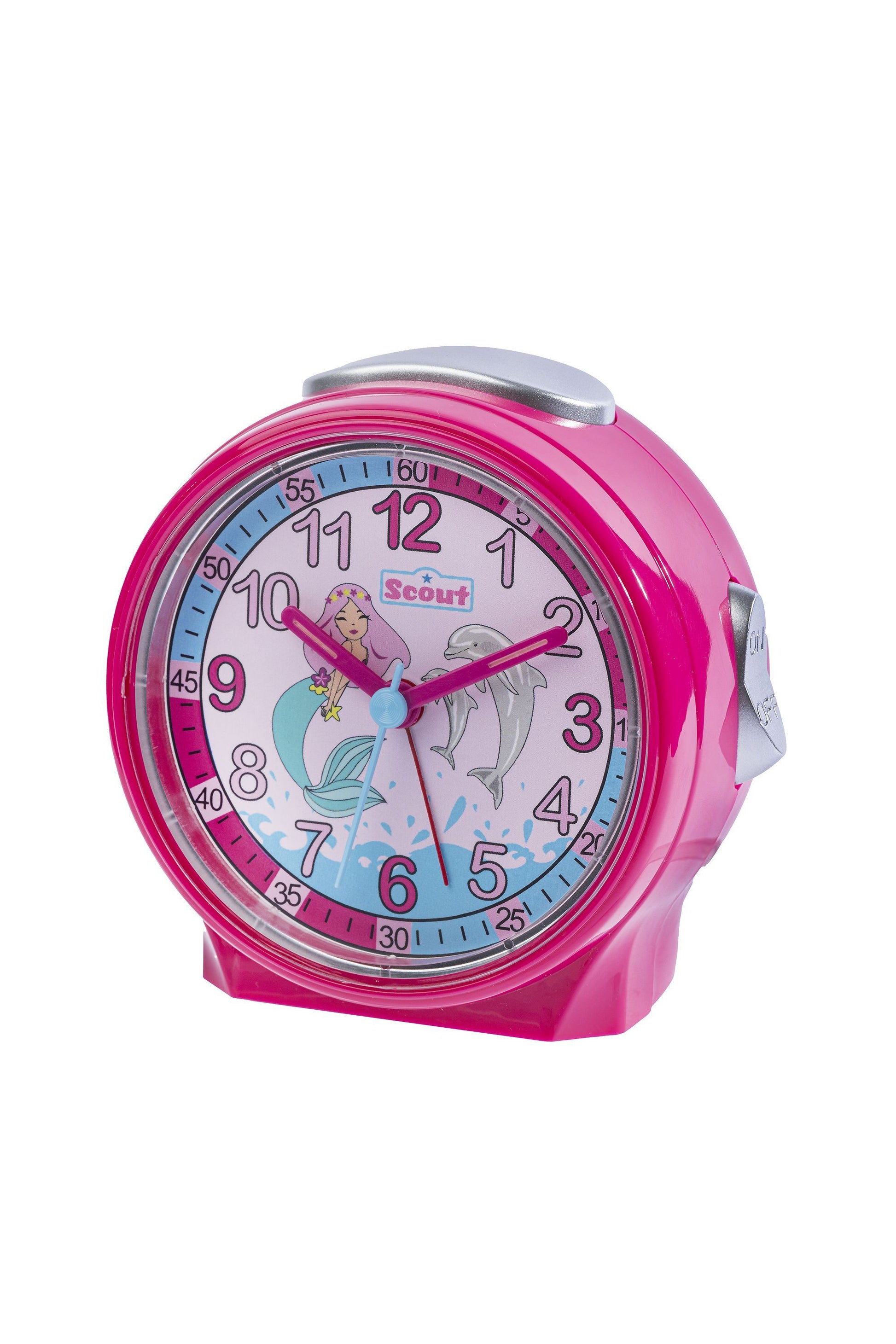 Scout - Kinder-Wecker der Serie "Friends" mit pinkem Gehäuse, Lernziffernblatt, Motiven aus der Wasserwelt und Beep-Beep Funktion mit Schlummer- und Lichttaste