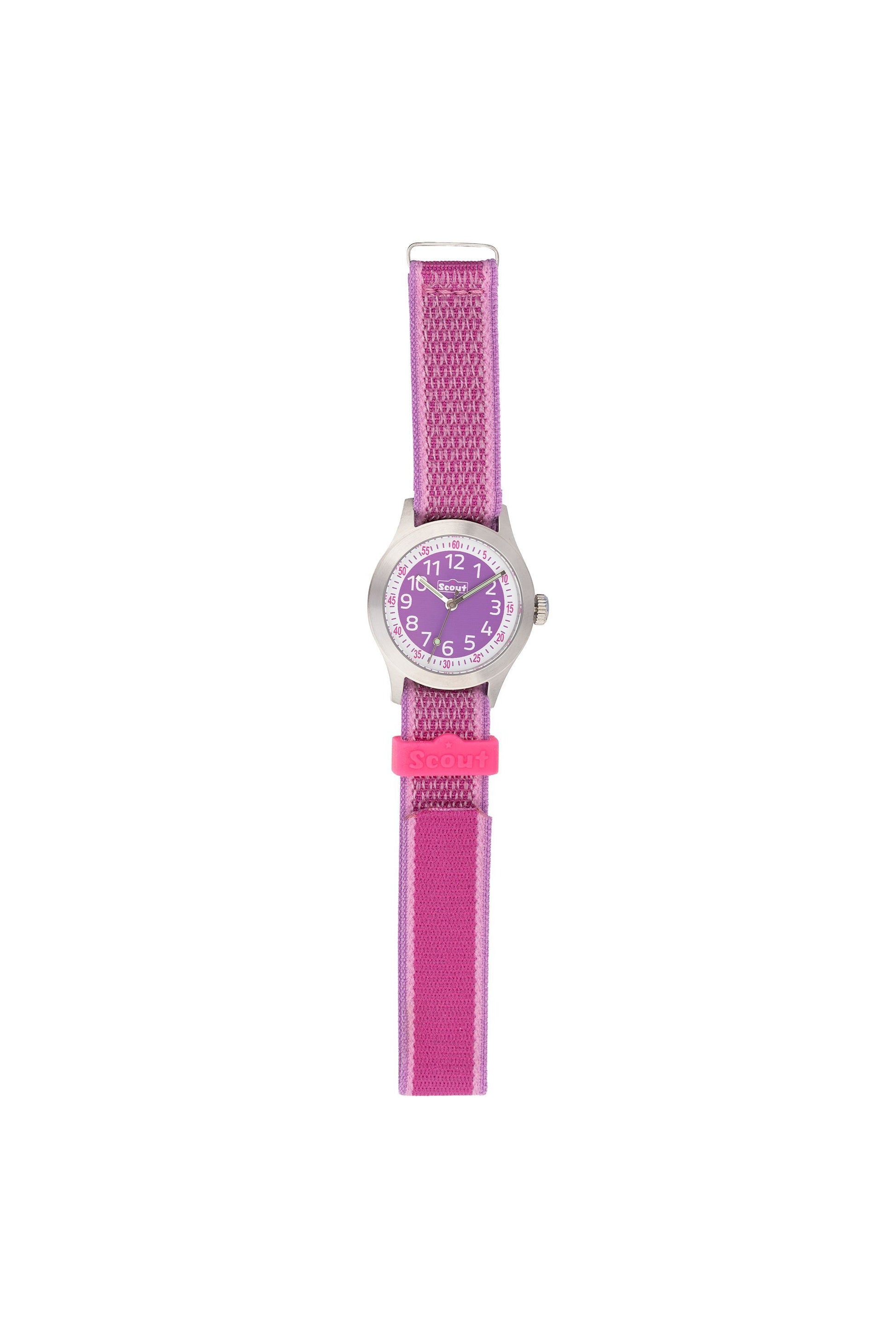 Scout Kinderuhr analog aus der Serie "Cool" mit rosa pinkem Textilband, Quarzwerk und Klettverschluss
