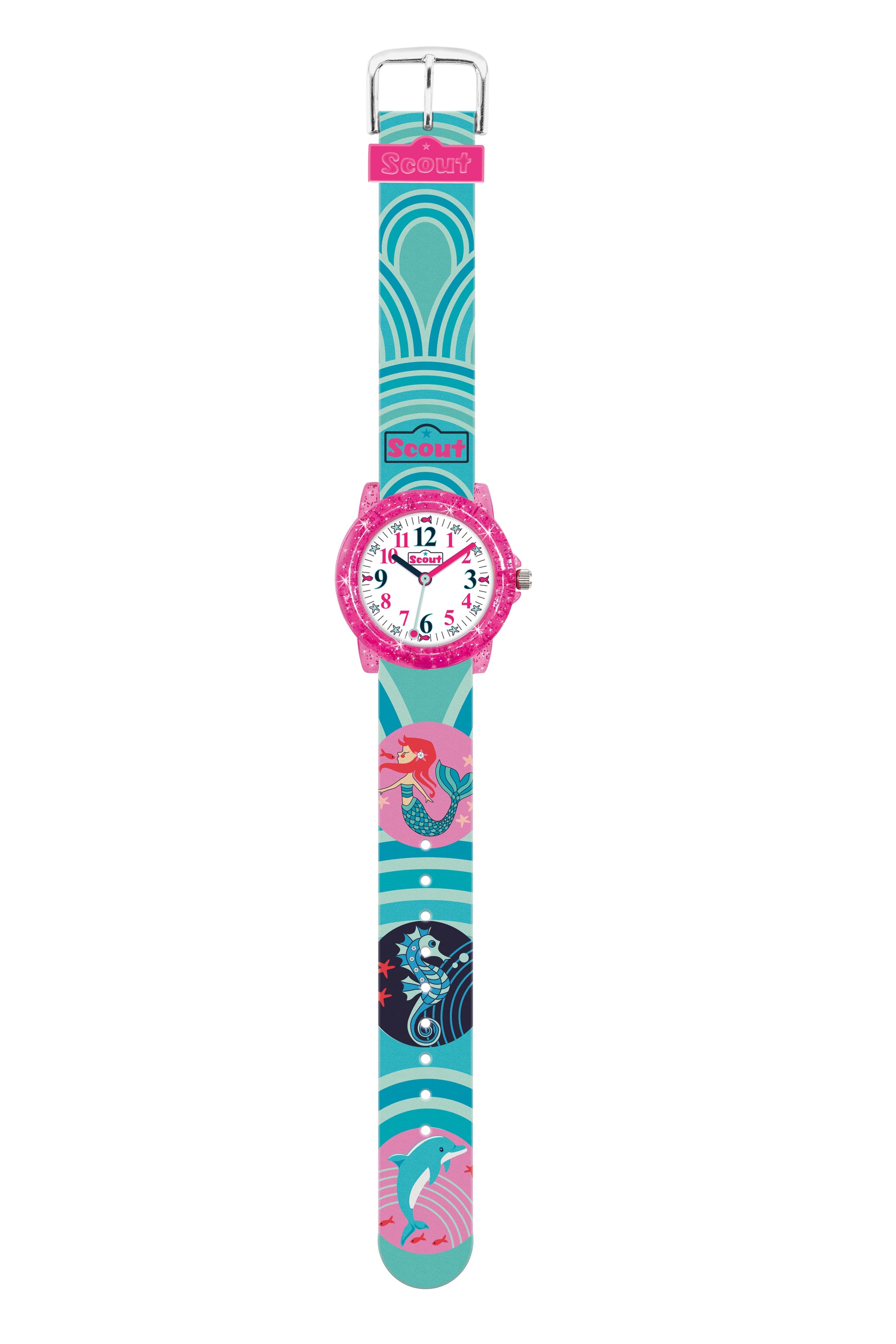 Scout - Kinder-Uhr aus der Serie "Crystal" wasserdicht bis 5bar mit buntem Kunstlederband, Meeres-Motiven und Dornschließe