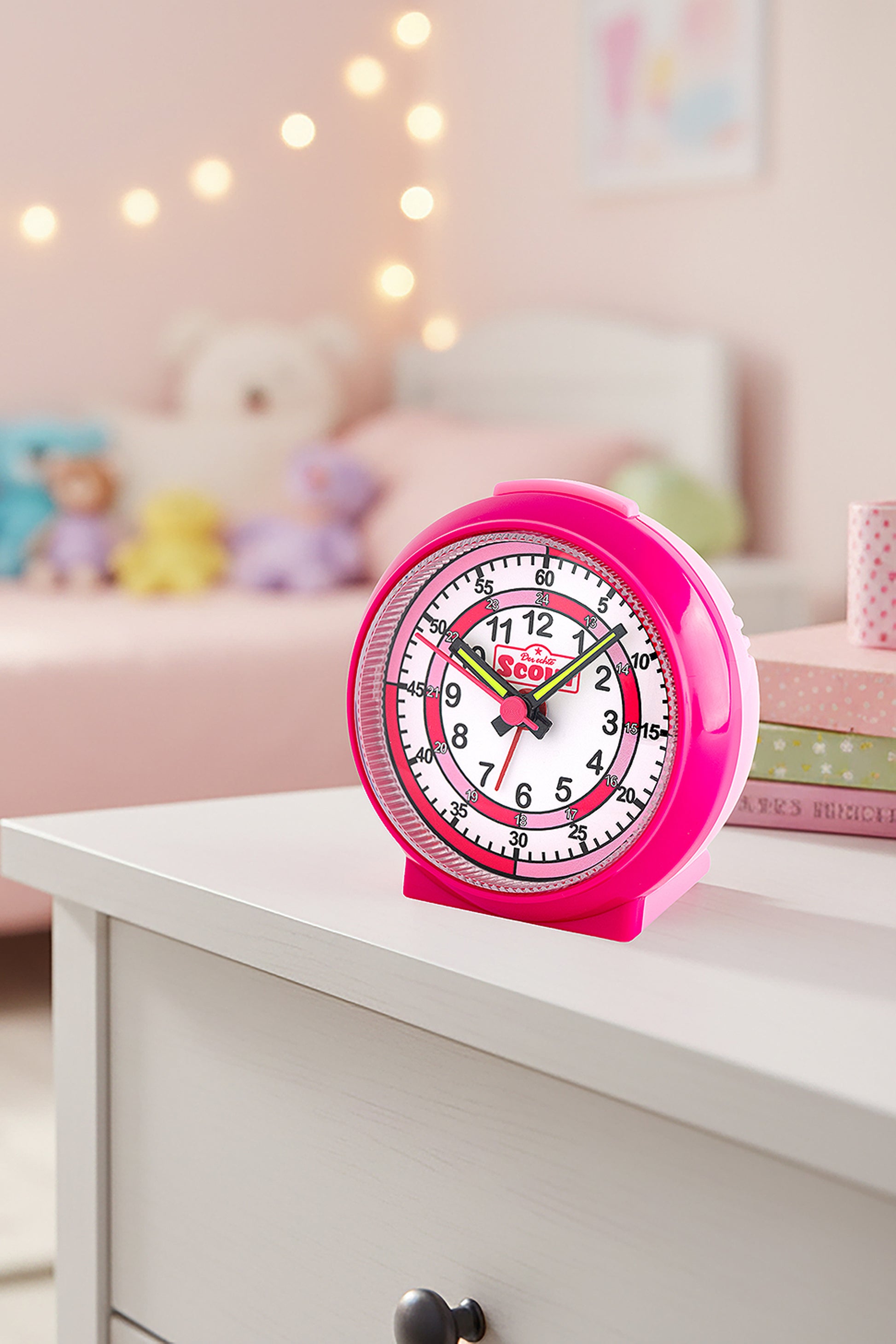 Scout Wecker analog mit pinkem Gehäuse und pinkem Lernzifferblatt für Kinder